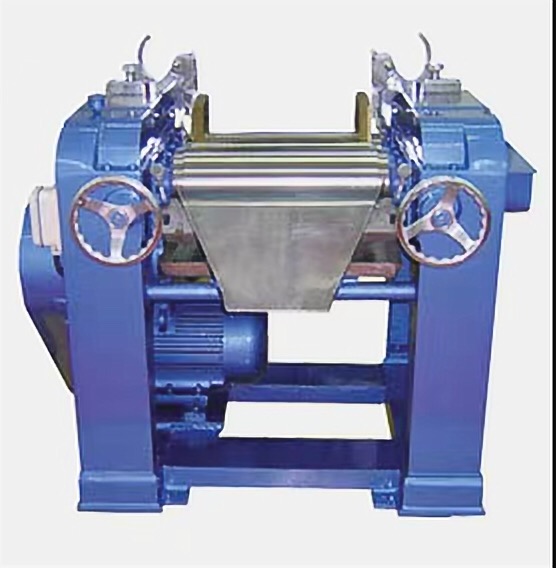 三輥研磨機適用膏體或高粘度物料使用。該機通過水平的三根輥筒的表面相互擠壓,手動式調(diào)節(jié)輥筒之間的間距,以不同速度的摩擦達到研磨效果??裳b有緊急制動按鈕,防止落入異物導致的設備損壞。輥子使用特殊硬質(zhì)合金澆鑄而成;也可以使用大理石材質(zhì)。傳動采用鏈條傳動、齒輪調(diào)輥。